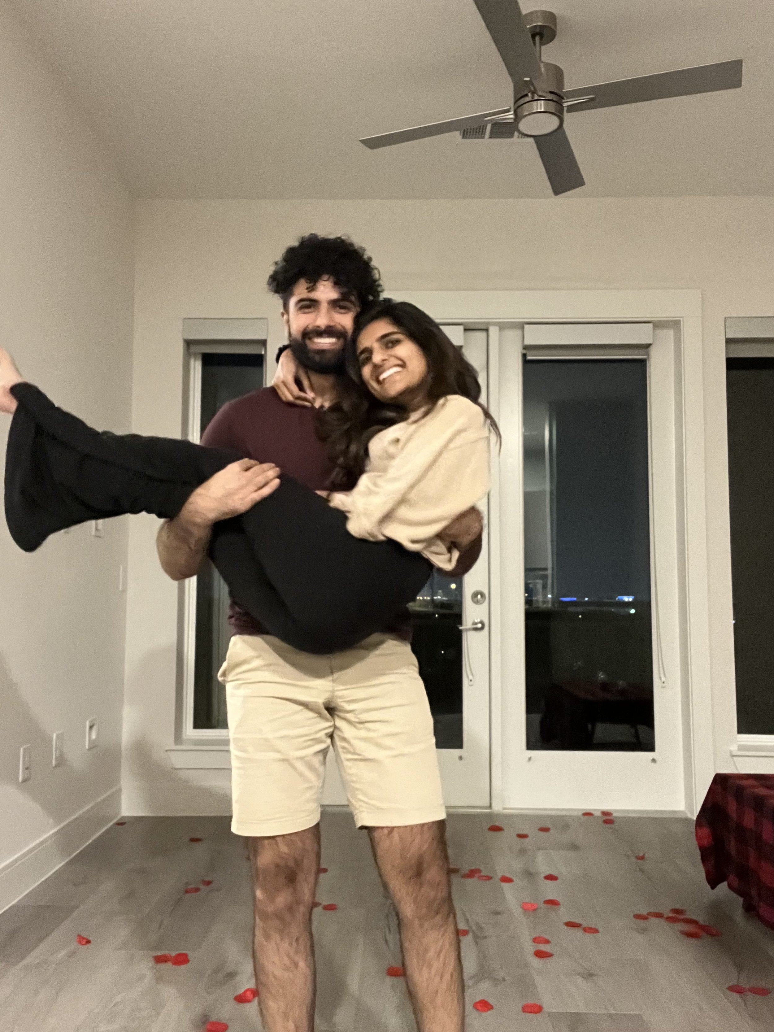 Ruhee was cat-sitting in Austin and Farhaz was out on his construction site. Somehow they squeezed in six dates while they were both in town… and didn’t even realize they were starting forever. Shoutout to Hinge and a touch of fate.